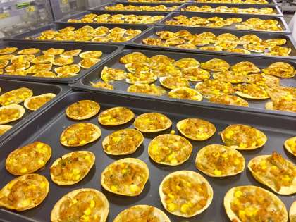 変わりピザは、生地にギョーザの皮を使用し、具にツナ、ピーマン、コーン、チーズをのせ、蒸し焼きにした児童に人気の献立でした。
