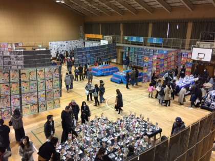 授業と共に講堂の作品展にも保護者、地域の方がたくさん見に来られて「とてもかわいい作品が並んでいて楽しいです。」「1年から6年まで全部の学年の作品が見られて良かったです。」という声が聞こえてきました。生涯学習ルームの作品も楽しんでおられました。