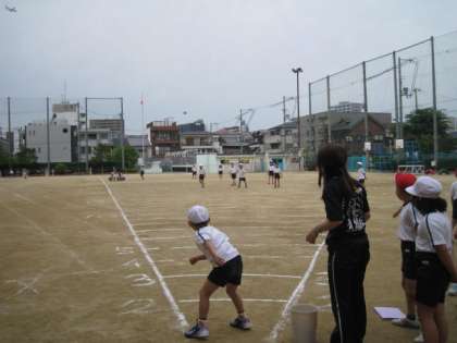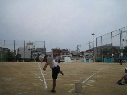 5月14日(水)「新体力テスト」のソフトボール投げを1,2,6年がしました。