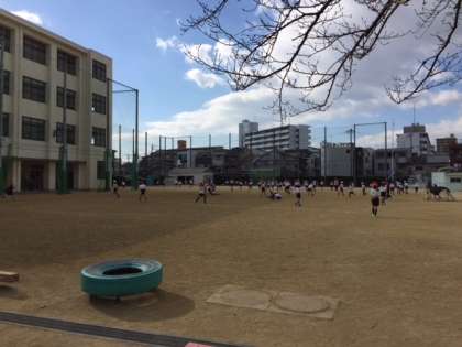 体育の時間は、寒い中でも運動場や体育館でいろいろな運動をしています。特にこの時期は、縄跳びやかけ足で十分にウォーミングアップをしてから、サッカーやタグラグビーなど走る要素の多いものに取り組んでいます。