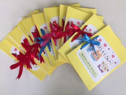 1年生は、先日行われた「昔遊びの会」でお世話になった、寿会のみなさんに、心を込めてお礼の手紙を書いて渡しました。会長さんは、さっそく参加していただいた方に配ってくださって、みなさん喜んでおられたそうです。1年生の気持ちが届いてよかったですね。
