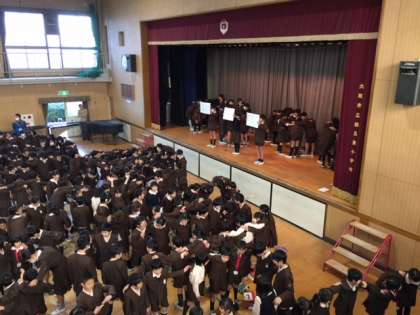 今朝の児童集会は「何の音でしょう?」ゲームでした。集会委員が録音してきた音を聞かせて、三択で答えます。なわとびを跳ぶ音や、走る音など、身近な音のはずなのにちょっと難しくておもしろかったです。
