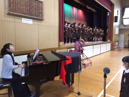 子どもたちは今日から元気に登校してきました。講堂での3学期始業式では、大阪市歌に続けて、校長先生から「今年の目標は立てましたか? それぞれの目標に向かってがんばってください。」というお話がありました。最後に6年生の手話に合わせて校歌を歌って、講堂での始業式を終わりました。