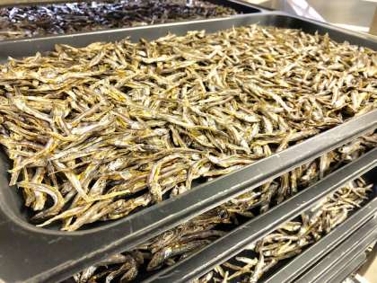 ごまめは、干したカタクチイワシの幼魚を焼き物機で焼き、砂糖、みりん、しょうゆで作ったたれをからませた、焼き物献立でした。