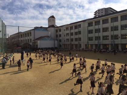 今日から「かけ足ランラン週間」が始まりました。今週は3,4年生です。初めに準備運動をして、運動場トラックの内側を3年生が、外側を4年生が、5分間各自のペースで走ります。走った後には運動委員が「今日はよくがんばっていました。明日もがんばって走りましょう。」と感想を言ってくれました。