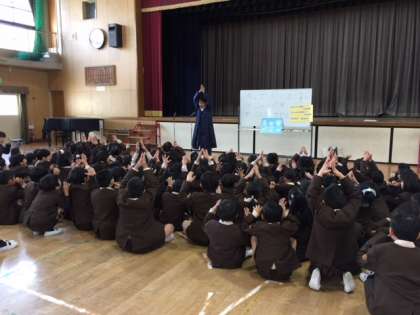 3時間目には1年生が「おとなりのくにをしろう」の学習をしました。韓国・朝鮮の先生(ソンセンニム)に、あいさつの言葉や、韓国・朝鮮の遊びを教えてもらいました。また、「カイ、バイ、ボ」の声で行うジャンケンをしたり、韓国・朝鮮の民話「トラよりこわいくしがき」のお話を聞いたりしました。1年生の子どもたちは「とても楽しかったです。」と言っていました。