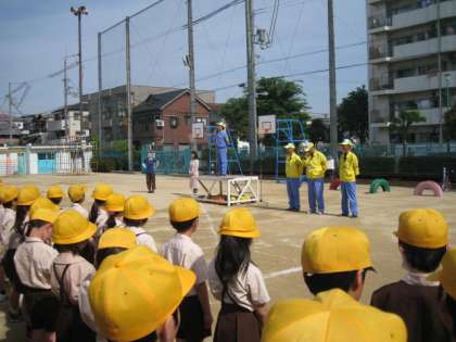 安全パトロールの方々からは、1.出会ったら元気に挨拶しましょう。2.黄色いジャンパーに青いズボン、黄色い帽子と腕章という安全パトロールの服装を知ってください。3.最近、自転車と歩行者の事故が多いので気を付けましょう。という三つのお話がありました。