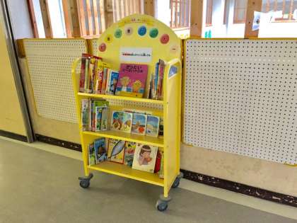 移動式給食図書コーナーは、2階の吹き抜け付近へ移動しました。
