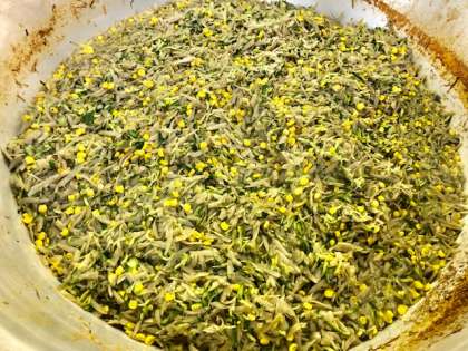 ごぼうサラダは、茹でたごぼう、きゅうり、コーンに個包装のマヨネーズをかけて食べるサラダの献立でした。