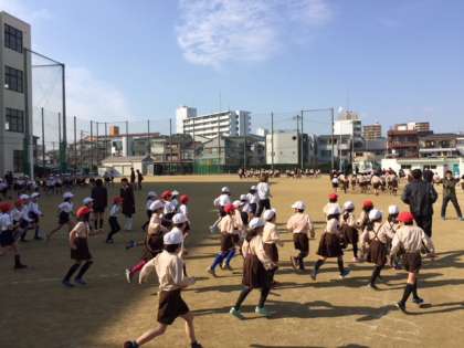 15分休みの「かけ足ランラン週間」は最後の3週目に入り、今週は1,2年生が走ります。1年生は初めての参加でしたが、一生懸命走っていました。インフルエンザがまた流行の兆しを見せています。手洗い・うがい・換気を励行して、流行予防に努めてください。