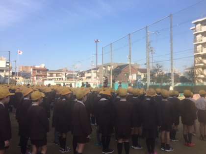 朝の全校朝会では、校長先生が「土曜授業よくがんばりました。先日、地域の方からお電話があって、財布を落としたのを二人の女の子が拾って届けてくれたので、お礼が言いたいということです。心当たりの人は申し出てください。」というお話がありました。
