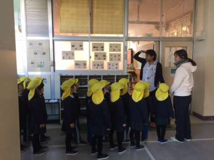 3,4時間目には近隣の幼稚園児が、学校を見学しに来てくれました。各教室を熱心に見て回りながら、学習室ではTiffany先生と英語で"Hello"とあいさつしました。