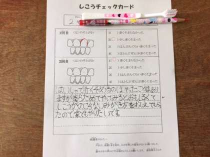 授業後の振り返りには「正しいはみがきのしかたがわかったので、これから家でもやってみようと思います。」などと書いていました。