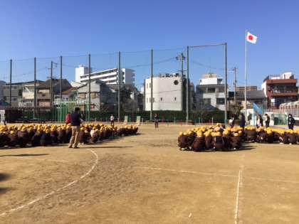 2時間目には、全校で火災に備えた避難訓練を行いました。給食室から出火という想定で、子どもたちは口にハンカチを当て、使えない階段を考慮した避難経路で、整然と運動場に避難しました。運動場は朝の冷え込みによる霜が融けてぬかるんでいたので、整列するのに少し時間がかかりましたが、人数を確認して、校長先生のお話を聞きました。