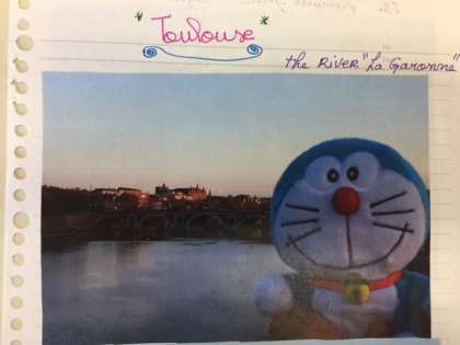 ドラえもんは、学校のみんなの人気者になっているようで、いろいろな授業や、校外学習にいっしょに入ったり、学校近くのピレネー山脈や、ガロンヌ川、「バラ色の街」と呼ばれる世界遺産の旧市街、子どもたちの家の農場等にも連れてもらったりしています。