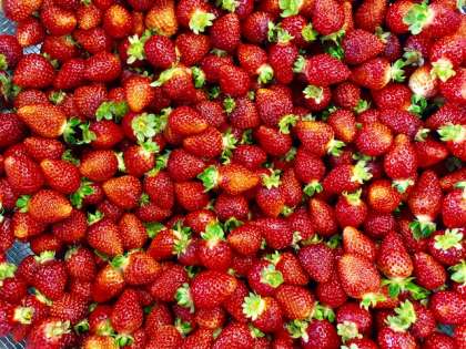 下段の写真は、水で3回洗いし、ザルで水を切っているいちごです。全部で2000個ほどありました。