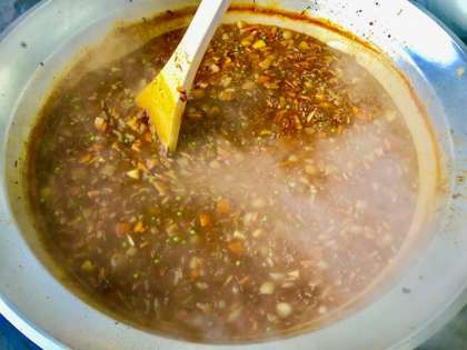 下段の写真は、ハヤシライスのルウを煮込んでいるところです。