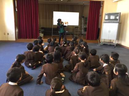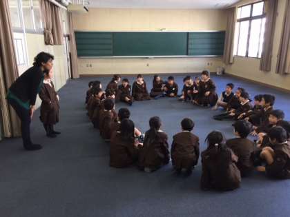初めの"Hello""How are you?"のあいさつは、ふだんからTETでやっているので、とても元気に言うことができました。次に、果物の名前を英語で言って、それについていろいろなゲームをしました。2年生の子どもたちはTiffany先生の話し方をしっかり聞いていて、すぐにじょうずに発音したり、簡単な会話を楽しんだりしていました。
