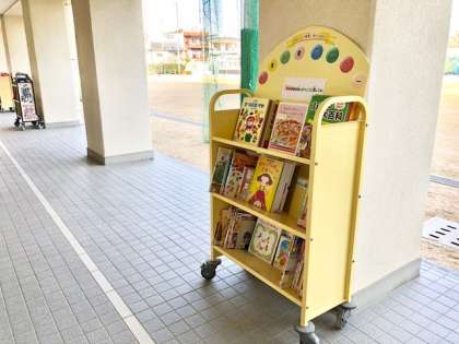 移動式給食図書コーナーは、1階の運動場側へ移動しました。