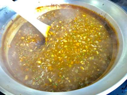 下段の写真は、チキンカレーを煮込んでいる様子です。