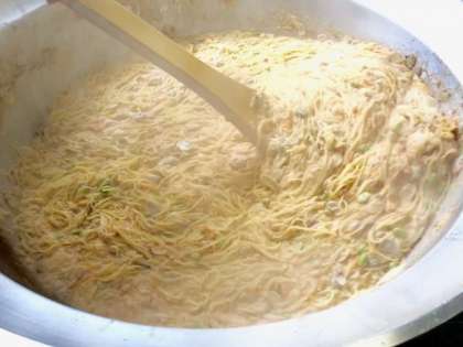 さけのクリームスパゲッティは、具材にさけフレーク、たまねぎ、マッシュルーム等が入ったスパゲッティでした。