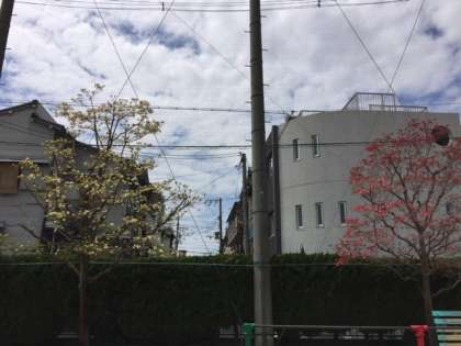 校庭にはサクラに代わって、赤と白のハナミズキが、明日の入学式に1年生が元気に登校してきてくれるのを待って咲き始めています。