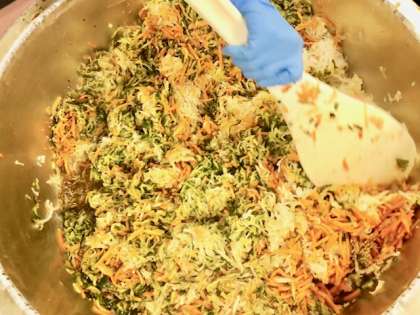 ビビンバは甘辛く炒めたひき肉と、切り干しだいこん、にんじん、きゅうりで作ったナムルをごはんと混ぜて食べる、韓国、朝鮮の料理でした。「ビビンバ」は「混ぜる」という意味の「ピビム」と、「ごはん」という意味の「パプ」という言葉からできています。