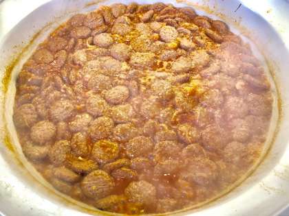 下段の写真は、ハンバーグを煮こんでいるところです。