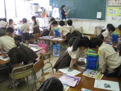 算数では「あわせていくつ」の学習をしています。初めにブロックで調べそれからたし算の計算の仕方に進んでいきます。その後ひき算の学習もします。
