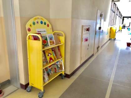 移動式給食図書コーナーは、4階の南階段前へ移動しました。