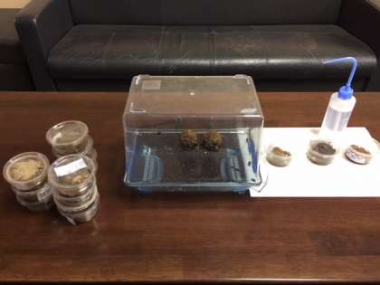 5月23日(水)5年生が、4月に幼虫から観察していたホタルがサナギを経て、成虫になって土の中から出てきました。5年生の子どもたちは、育ちぐあいを気にして、職員室の横を通るたびに、そこに置かれた幼虫のケースをのぞきこんでいます。暗くなってから校長室で見ると、光り始めているものもいます。