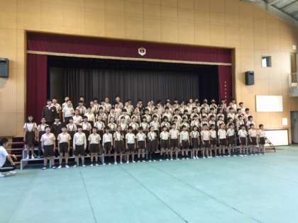 全学年の児童には、お祝いの場ということで、暑い中ですが、講堂では標準服の上着を着てくるよう伝えています。明日は授業の参観はありませんが、講堂での催しに参加ご希望の保護者の皆様は、ぜひおいでください。