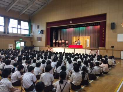6月8日(金)本校では、毎年「芸術鑑賞」として、音楽を聴いたり、劇を見たりして児童の情操を養っています。今年度は、伝統芸能の一つとして、落語を鑑賞しました。