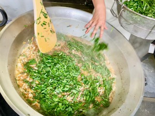 下段の写真は、マーボーはるさめを仕上げているところです。