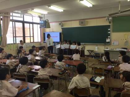 学習参観の1時間目は、全学級で「鶴南イングリッシュタイム」を見ていただきました。各学年に応じて、楽しく英語の歌を歌ったり、ゲームをしたりしました。