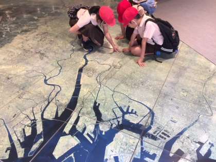 6月13日(水)6年生は「湖っ子スクール」に向けて、7:15に学校を出発しました。琵琶湖博物館では大きな地図で、鶴見南小学校の位置を確かめたり、ビワコオオナマズを見たりしました。