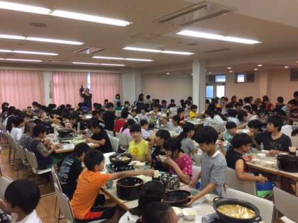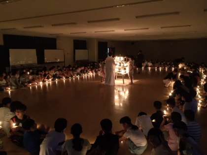 6月14日(木)昨夜の夕食は「田舎風味噌鍋」でした。みんなで鍋を囲んで美味しくいただきました。夕食後は、キャンドルファイヤーをしました。ろうそくの灯で幻想的に始まり、みんなで楽しく盛り上がりました。