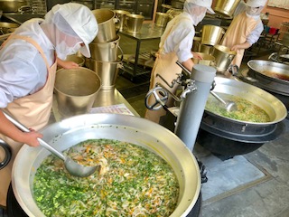 下段の写真は、スープを配缶しているところです。