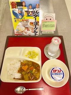 本日の給食を食べてみて児童たちは「カレーの鶏肉が美味しかった。」「サラダのドレッシングの味付けが美味しかった。」「ヨーグルトは家でもよく食べていて大好きな食べもの!」と感想を述べていました。