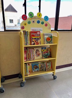 移動式給食図書コーナーは、4階の中央階段の踊り場へ移動しました。