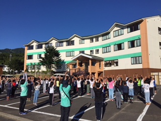 7月22日(日)昨夜のキャンプファイヤーの後は、疲れて早く眠りにつきました。その分、早朝に目が覚めて、朝会で元気にラジオ体操をしました。