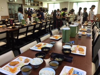 7月23日(月)林間最後の夜は、室内オリンピックを楽しみました。オセロゲームは白熱した試合で大いに盛り上がりました。3日目の朝食も、食事係が準備を手伝いました。ご飯をよそったり、お味噌汁を運んだりして大活躍でした。