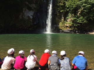 朝食後は八反の滝に行きました。険しい山道を下っていくと急に涼しくなって美しい滝が目の前に見えてきます。みんな滝からパワーをもらっていました。