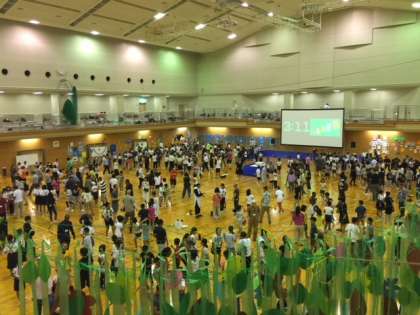 8月25日(土)6年生の希望者4名が、大阪市イングリッシュデイに参加しました。当日は午前・午後に分かれて大阪市の全小学校から希望者が集まり、本校が参加した午前の部には、約300人の小学生と約100名のC-NETが一堂に会しました。