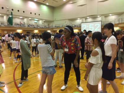 オープニングに続いて、IDスイッチ、ライオン・キング、Origami、ダンス等のアクティビティを楽しみました。参加した子どもたちは、初めのうちは恥ずかしそうにしていましたが、慣れてくるとどんどん積極的にC-NETや他校の子どもたちと英語で交流しました。本校に来ているC-NETのAllan先生と、Adam先生もおられました。子どもたちには、これからも楽しく英語に親しんでほしいですね。