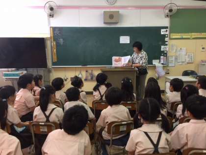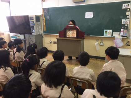 2,3時間目には「大阪学校図書館教育研究会」の方が2年生に本の読み聞かせをする「お話プレゼント」がありました。2年生の子どもたちは、静かにお話を聞いたり、ゲラゲラ笑ったりと、お話の世界を楽しんでいました。明日は1年生で行います。