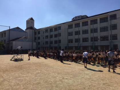 9月3日(月)9月の授業が始まりました。全校朝会は、2学期になって初めて運動場で行いました。体育館や運動場では、今日から運動会の練習が始まり、どの学年も給水タイムを設けながら、団体演技の振り付けを楽しく練習していました。