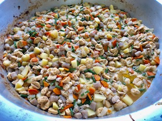 下段の写真は、出来上がったじゃがいもと一口がんもの煮ものです。