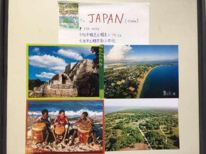 3年生は総合的な学習の時間に、国際理解教育の一環として、JICA(国際協力機構)を通して海外の子どもたちに手紙を書きました。先日、太平洋の島国パラオと中央アメリカのベリーズから返事が届きました。きれいな写真の絵ハガキや、手描きのカワイイ絵が添えてあって、子どもたちが英語でお返事も書いてくれていました。これまであまり知らなかった国や子どもたちと交流する貴重な機会になりました。