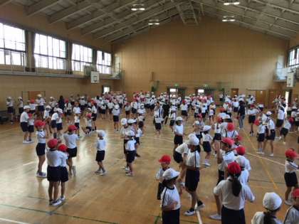 2時間目は6年生が1年生に鶴見音頭を教えました。なかよし班でグループを作り、6年生がていねいにわかりやすく踊り方を教えたので、1年生もすぐに覚えてじょうずに踊れるようになりました。運動会当日は、民踊会の皆さんと共に全学年児童が楽しく鶴見音頭を踊ることでしょう。